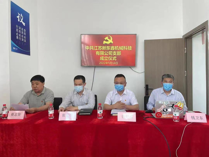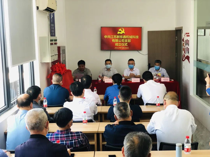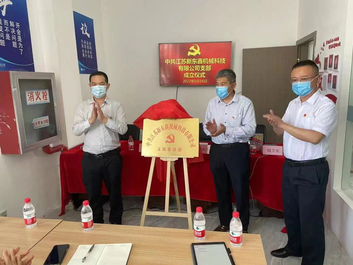 經(jīng)中共江蘇省張家港高新技術(shù)產(chǎn)業(yè)開發(fā)區(qū)工作委員會(huì)同意,新建中共江蘇新東鑫機(jī)械科技有限公司支部委員會(huì),隸屬韓山村黨委管理,由錢衛(wèi)東同志任黨支部書記。5月16日下午,在新東鑫公司舉行了黨支部成立揭牌儀式,高新區(qū)黨群工作部部長(zhǎng)張左平同志參加了此次活動(dòng)。